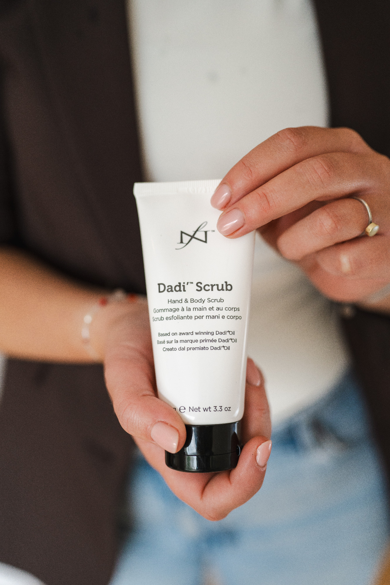Dadi’Oil is een snel intrekkende, niet-vettige olie die nagels, nagelriemen en huid verzorgt. De olie bestaat voor het grootste deel uit natuurlijke, biologische ingrediënten zoals avocado-, jojoba- en olijfolie. Vitamine E beschermt tegen schade en het natuurlijke stofje oleocanthal helpt bij kleine wondjes en irritaties. Door de mix van 21 essentiële oliën ruikt Dadi’Oil lekker en werkt het verfrissend.